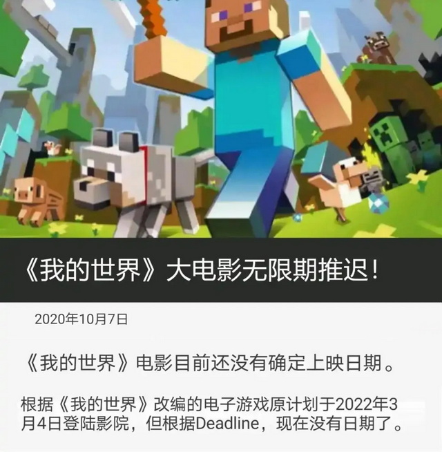 影片最初计划根据游戏的故事模式,围绕末影龙摧毁地上世界展开。不过这一剧情设定被推倒重来,由艾莉森·施罗德接过剧本撰写工作,导筒也转交给杰瑞德·赫斯。《我的世界大电影》原本定档2022年3月,但随后一路推延至今年4月。