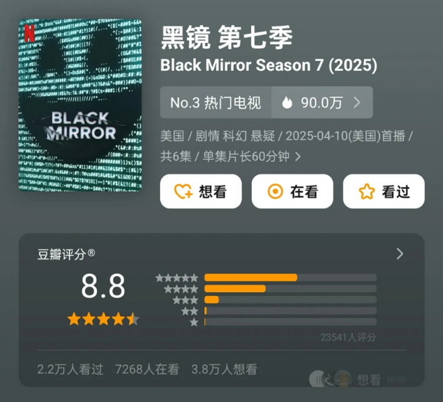 《黑镜》已经很久没有收获如此正向的评价了。第五季播出后,关于“黑镜已死”的论调充斥于整个互联网,跌至谷底的评价瓦解着《黑镜》这块“经典反乌托邦之作”的金字招牌。