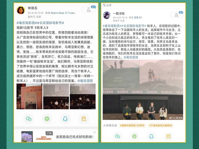 毒舌观影团被分配到了影片《牧羊人》,这也是观影团排片表中的首场放映影片。在此之前,毒舌观影团做的活动通常以院线片、商业片为主,但也想尝试链接到更偏艺术片、文艺片的受众,于是在收到组委会邀请后,便很快决定试一次。