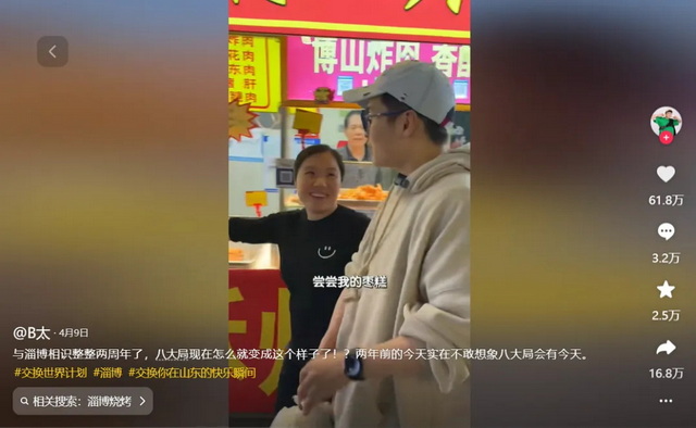 淄博爆火就少不了“市场打假”的博主“B太”以及宣传“淄博烧烤的正确吃法”的抖音博主“mr_木”的助力;荣昌直接承接“卤鹅大叔”和“甲亢哥”的泼天流量,将线上流量化为线下营收;而地理位置与韩国更为接近,且有大量朝鲜族居民居住的延吉,更是吸引不少韩国网红博主前来体验打开,在YouTube上也有不小热度。