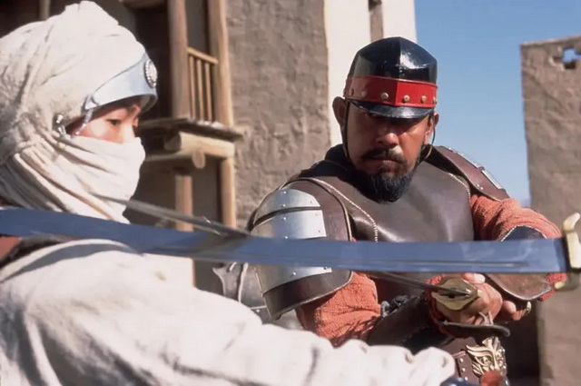 后来在千禧年前后,适逢华语大片风潮正炽,何平导演推出了更具野心的《天地英雄》。它追溯千年,将故事背景设置在彼时龙争虎斗的西域腹地,小人物们被卷入了重大历史之中也被迫成为了英雄。本片依然极具侠义风貌和视觉奇景,但受结尾的争议以及场外因素拖累,本片未能取得预期票房成绩,华语西部片类型化尝试遭遇暂时性挫折。