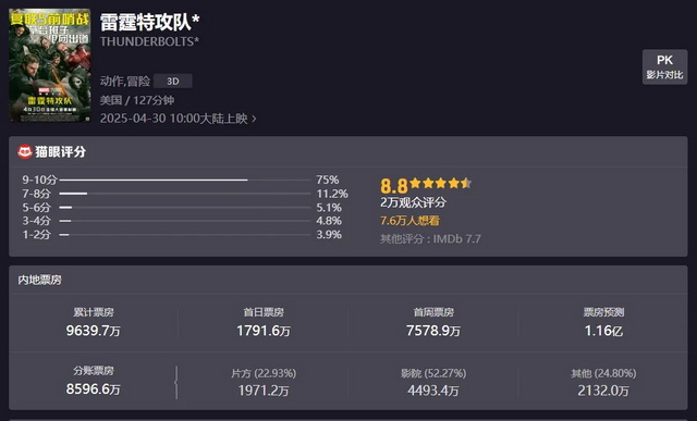 《雷霆特攻队*》内地票房(图源:猫眼专业版)
