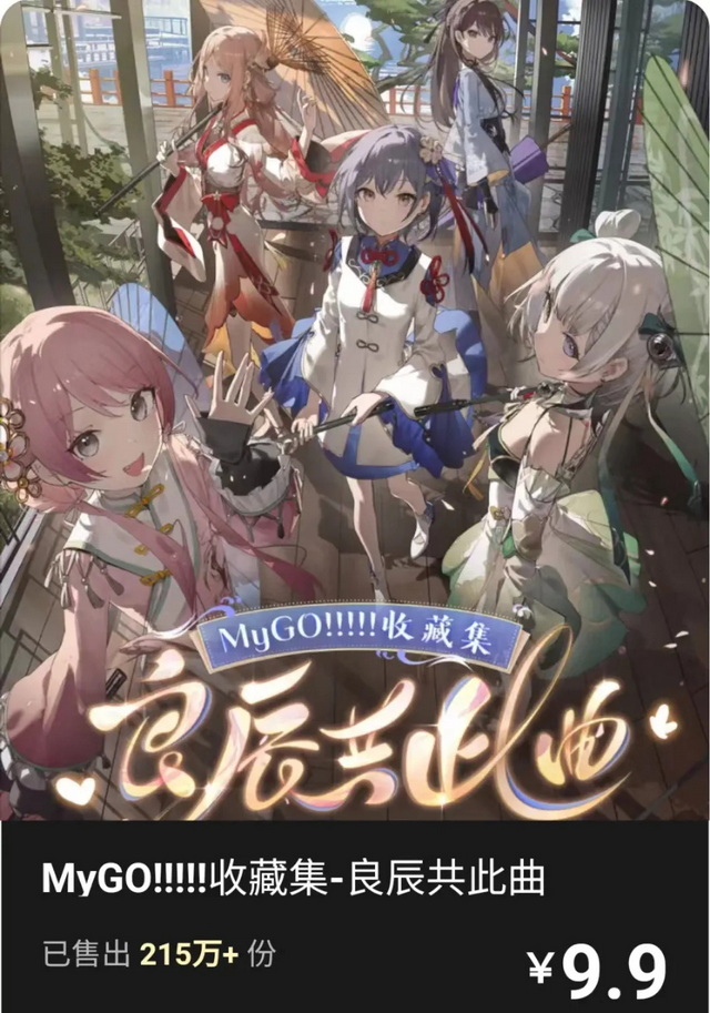 MyGO有多火呢?其与哔哩哔哩合作推出的数字藏品“良辰共此曲收藏集”推出10个月,便售出超过210万份,创造了该品类有史以来的最高销量,该IP从“底边”逐步成为国内大牌的过程,反映了日本动漫产业的新趋势。