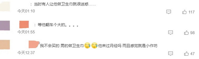可是,难以忽视的一点在于,黄子韬创业选择的产品是卫生巾。这是一个彻头彻尾的女性产品,过往男明星基于代言、带货等场景在女性用品上翻车的案例不胜枚举。黄子韬下场,虽然在身份反差和流量效应叠加的催化作用下,有了足够的关注度,但同时也必然会招致同等程度的质疑——男明星真的能懂女人吗?男明星真的安好心了吗?