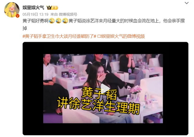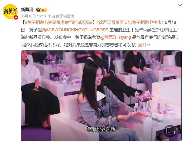 在朵薇的发布会现场,黄子韬说,“我有见过我老婆量大的时候,有的时候会在地上,我会去亲手擦掉那些血的。”同样的话在后来直播间带货卫生巾时他又提到了一次。而很明显,从当下的反应来看,徐艺洋是并不接受他私自向外传递个人隐私的。