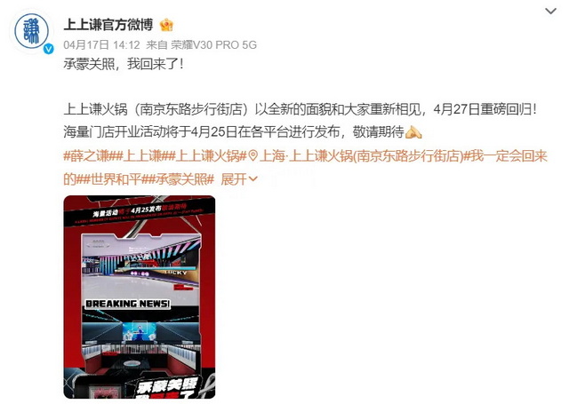 随着市场演变,明星投资涉猎产品不再聚焦于宏观的商业投资,而是倾向于个体经营,这也使得明星创业呈现出更鲜明的IP化和专业化特征。比如,陈赫创办的”贤合庄”火锅连锁品牌,薛之谦的”上上谦”串串香,还有余文乐、白敬亭等明星的潮牌,都是将个人形象与业态深度绑定的典型案例。