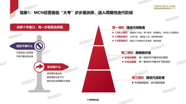 周期性迭代时期,MCN进入运营“大考”。站在决策的十字路口,每一个选择都极为关键,这就要求所有MCN机构,都需要坚定地知道自己“要做什么,以及不做什么”。