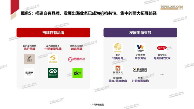 这些机构在发展过程中,不仅拓展了电商业务、入驻不同平台、进军多元内容领域,还开始建设自有品牌、拓展海外业务。