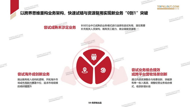同时,还要以跨界思维重构业务架构,快速试错与资源复用实现新业务“0到1”的突破。