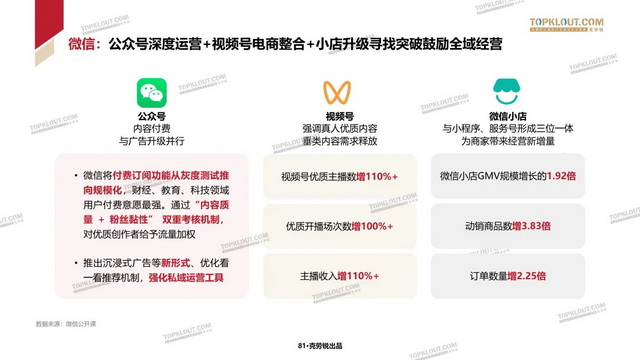 去年,视频号的快速增长,为微信小店与小程序、服务号形成三位一体带来了帮助。