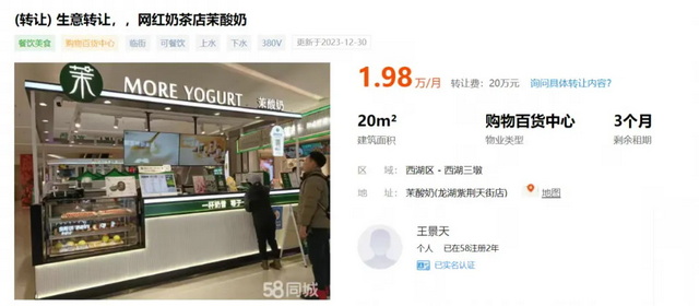在一些情况下,商户除了需要缴纳租金,还可能需要支付一定的流水提成,成本会比自己开设门店高一些。以杭州三墩龙湖紫荆天街为例,一家34平米的沿街商铺年租金在7—8万元,而一家位于B1层的20平米餐饮商铺,月租金在1.98万元左右,同时还需要支付20万元的转让费。但依旧有不少商家想要入驻美食城,背后的主要原因,就是美食城的集聚效应和客流量。