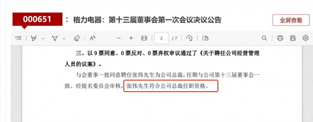 今年2月,董明珠与俞敏洪在节目《酌见》对话中透露已找到格力接班人,有三四个预备人选。4月22日,董明珠卸任格力电器总裁职务,正式结束她自2001年以来连续24年的“总裁任期”,并将总裁一职交给1999年入职格力的张伟。不过,现年71岁的董明珠继续连任格力董事长,开启第五个三年任期。这一职务交接,被业内认为,格力电器正式开启了交接班,但董明珠也表示“三年任期不等于你能干满三年,不行还是要下去”。
