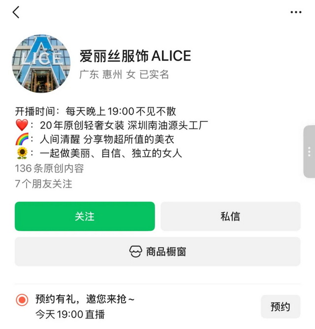 根据视频号官方统计数据,@爱丽丝服饰ALICE的首播GMV就高达400w,3天累计超过1000w。