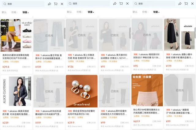 她们的购物车不是性价比清单,而是生活方式的投射。陆姐直播间里,299元的醋酸连衣裙常常卖到断货,截至5月19日,@爱丽丝服饰ALICE橱窗中多款样衣已显示售罄。
