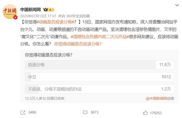 对于分级意愿的网络调查(图源:中国新闻网)