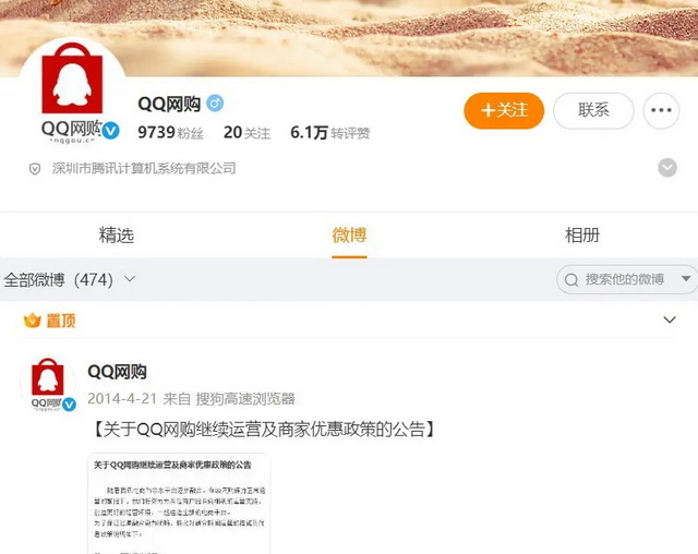 QQ网购的微博,2014年以后未更新(图源:@QQ网购)