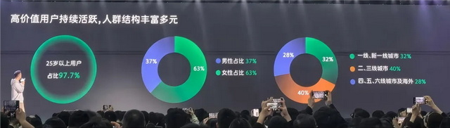 从微信公开课2024年和2025年发布的数据来看,视频号上25岁以上用户如今已经占比97%,相比2023年主力军为30-50岁的中老年人,平台用户更加年轻化。一线/新一线/二三线用户占比72%,女性用户依旧是平台主力消费群。