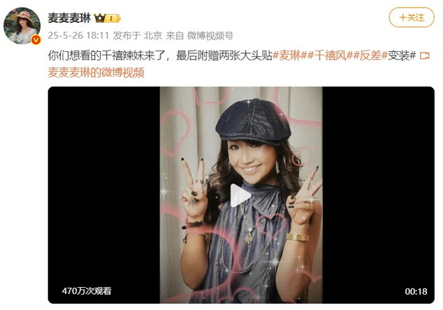 5月底,麦琳在抖音、小红书上发布了一组“日系千禧辣妹”写真,视频中的麦琳先放出网友说其瘦了像安室奈美惠的截图,随后玩起了经典换装,镜头一转,一身睡衣的麦琳瞬间变身头戴鸭舌帽,画着烟熏妆,仿佛漫步街头的涩谷辣妹。
