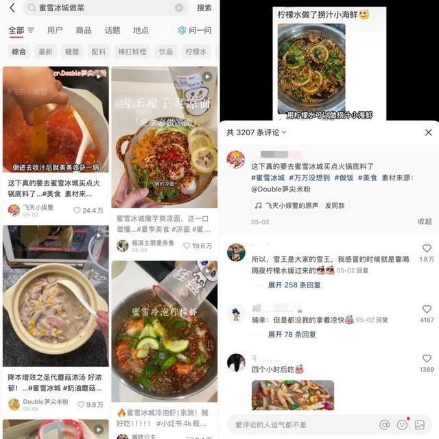 当下,一场关于用蜜雪冰城做菜的全民实验在小红书悄然发酵。