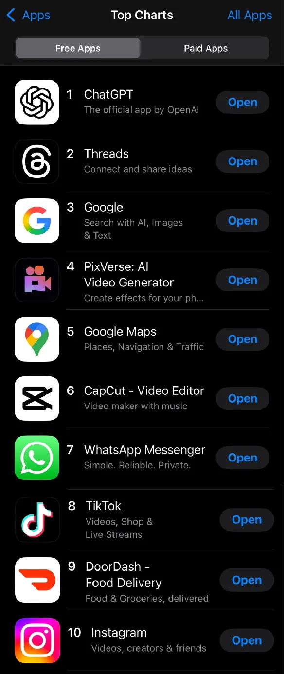 受到全球C端用户的喜欢和认可,一直是PixVerse(拍我AI)的品牌优势所在。今年5月底,PixVerse V4.5版本发布后,引发海外用户下载热潮,一度超越TikTok来到美国总榜第四位,登顶视频类应用榜首。
