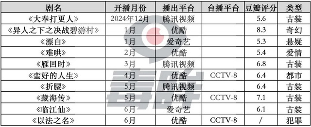 以市场普遍参考的豆瓣评分为准,8分以上通常被视为精品剧。按照这个评判标准,今年上半年称之为精品剧的仅有4部。