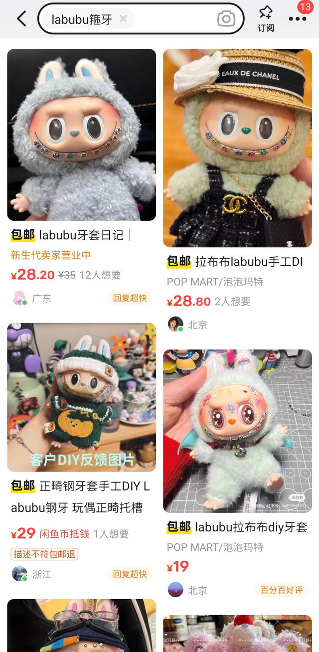 这些用户开始“大闹闲鱼”。给labubu纹身、箍牙、鉴定、整形;代扔垃圾、代套床上四件套、甚至代吃酒席,提供各种“只有想不到没有做不到”的“代服务”;还有人当起了“情感导师”,专门接单骂醒“恋爱脑”。
