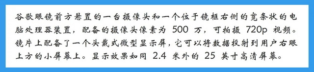 早在2012年4月,当时在掌控了智能手机操作系统半壁以上江山(安卓)的谷歌,推出了谷歌眼镜(Google Project Glass),它可通过声音控制拍照、视频通话和辨明方向,以及上网冲浪、处理文字信息和电子邮件等。