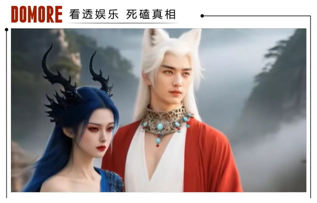 但“更真实地呈现人类”也一定是AI工具的技术攻坚方向,因此,在技术力进一步提升的前提下,以《九尾狐》《鲛人泪》为代表的,与传统古偶语法拼贴融合的AI短剧,成为了最新的趋势。这类作品基本“套壳”女频仙侠玄幻设定,沿用大女主人设和典型情节模板,但在具体呈现上却更贴近短视频抽象文化,两相结合,呈现出错乱的“疯癫感”。