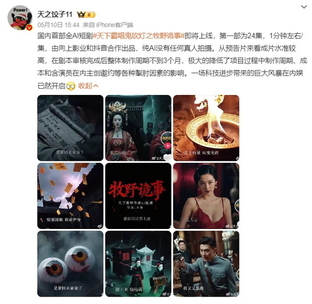 全AI短剧《牧野诡事》(图源:微博@天之饺子11)