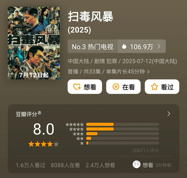 豆瓣评分8.0、开播仅四天就获得云合评级S+,随着《扫毒风暴》的热播,进程过半的剧集暑期档,终于进入了状态。