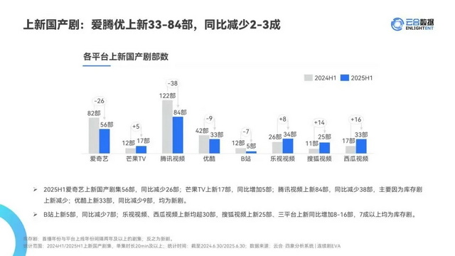 2025H1各平台上新国产剧部数(图源:云合数据)