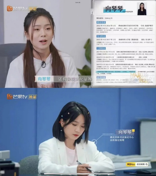 其中,@向琴琴 还参与了《初入职场的我们·法医季》《法医探案团》等综艺节目的录制,将女性法医的真实面貌进一步推向主流传播语境,提升了职业的公共可见度和认知温度。