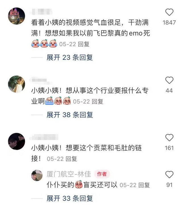 @厦门航空?林佳 就是一个典型例子。她的视频以“报告上班!”为标志性开头,用轻柔的语调记录飞行中的点滴,以温和、沉静的态度回应网友的提问,并在镜头中频繁露出邻家姐姐般的笑容,正是这种“没有距离感”的呈现,使她在粉丝中获得“佳佳小姨”的昵称。