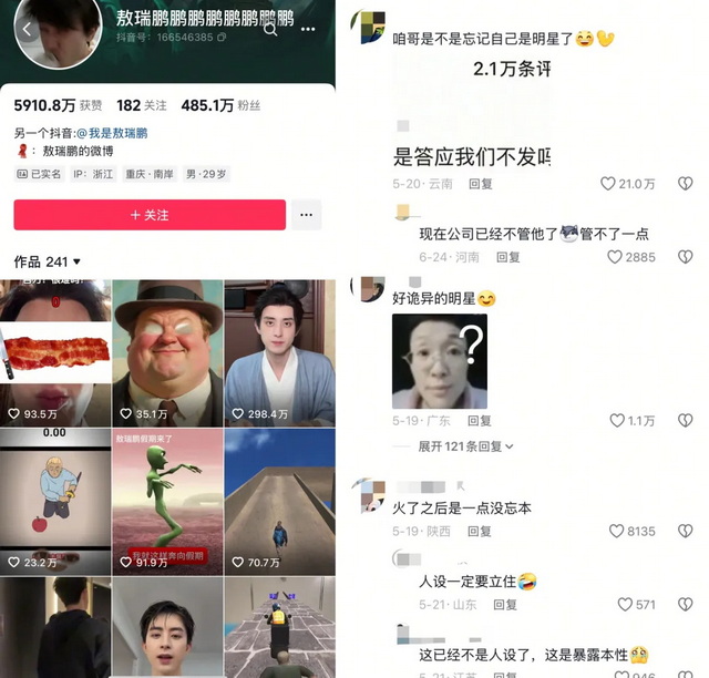 现在越来越多的明星在小红书化身朋友,与粉丝分享日常碎片。演员敖瑞鹏不发帅气的物料,却热衷于与在抖音狂发自己玩抽象小游戏的视频,意外圈粉无数。